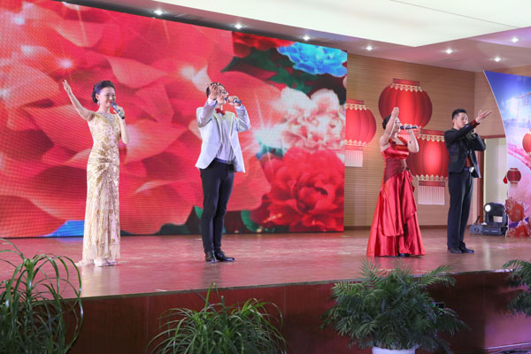 一曲氣勢恢宏的舞蹈《輝煌禮贊》拉開了文藝匯演的序幕。音詩畫《我們的領路人》展現出新譽集團領導帶領全體員工艱苦拼搏、創新發展的智慧、膽識和擔當以及全體員工與集團同呼吸共命運的忠誠。《小城情思》和《茉莉花》等舞蹈節目,充分展示了企業女職工在黨委書記戈亞琴女士的帶領下,巾幗不讓須眉,努力為集團增光添彩的最新風采。隨后,小品、獨唱、合唱等形式的節目繽紛亮相。今年的團拜會首次加入了微信搶紅包的活動環節,臺上臺下形成了一片熱熱鬧鬧迎新年、歡歌載舞慶豐收的歡樂海洋。