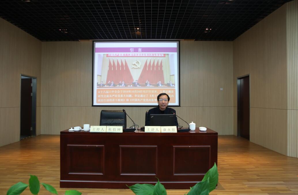 隨后,常州市委黨校理論研究中心主任康永超教授應(yīng)邀為全體黨員和領(lǐng)導(dǎo)干部作了《開啟全面從嚴(yán)治黨新征程》的宣講,他通過對“六中全會的總體定位與鮮明特點”、“全會對習(xí)近平核心地位的明確”、“《準(zhǔn)則》和《條例》的基本要求”這三個問題的解讀,幫助黨員和領(lǐng)導(dǎo)干部進(jìn)一步理解全面從嚴(yán)治黨的重要性和必要性,理解《關(guān)于新形勢下黨內(nèi)政治生活的若干準(zhǔn)則》和《中國共產(chǎn)黨黨內(nèi)監(jiān)督條例》的基本要求。